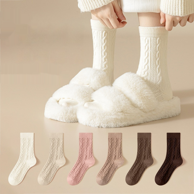 Autumn And Winter Mid-calf Boneless Thickened Solid Color Women’s Cotton Socks