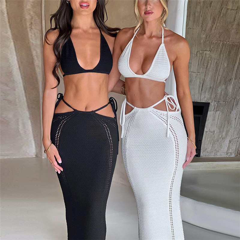 Backless Lace Up Vest High Waist Slim Skirt Suit For Women