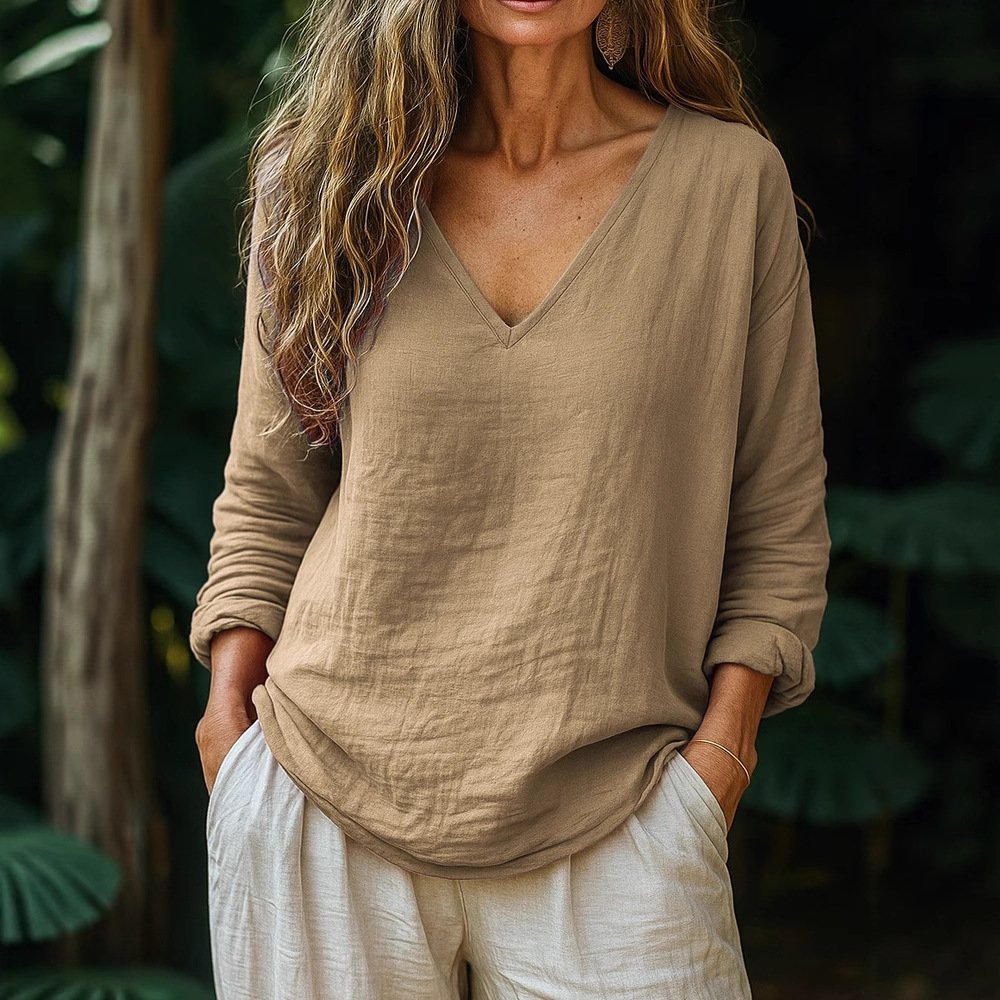 Casual Loose Fashion Cotton And Linen Long-sleeved Top