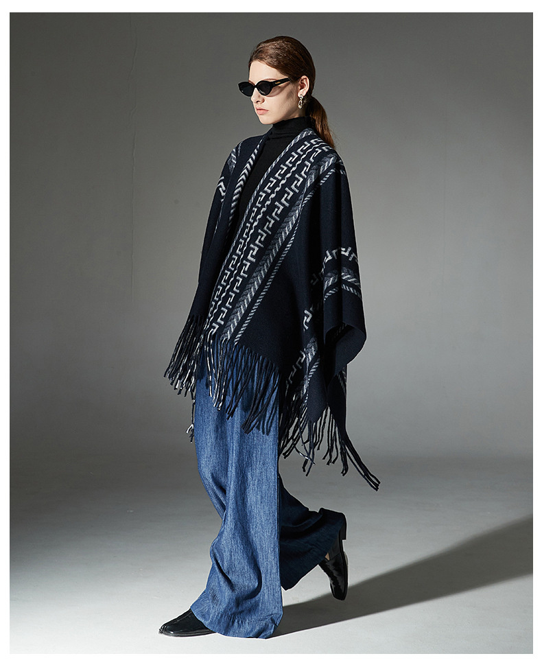 Color: navy blue tassel shawl