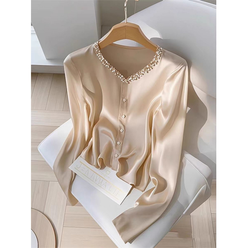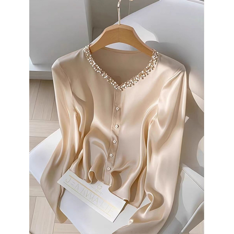 Early Autumn New Arrival French-style Elegant Champagne-colored Women’s Shirt