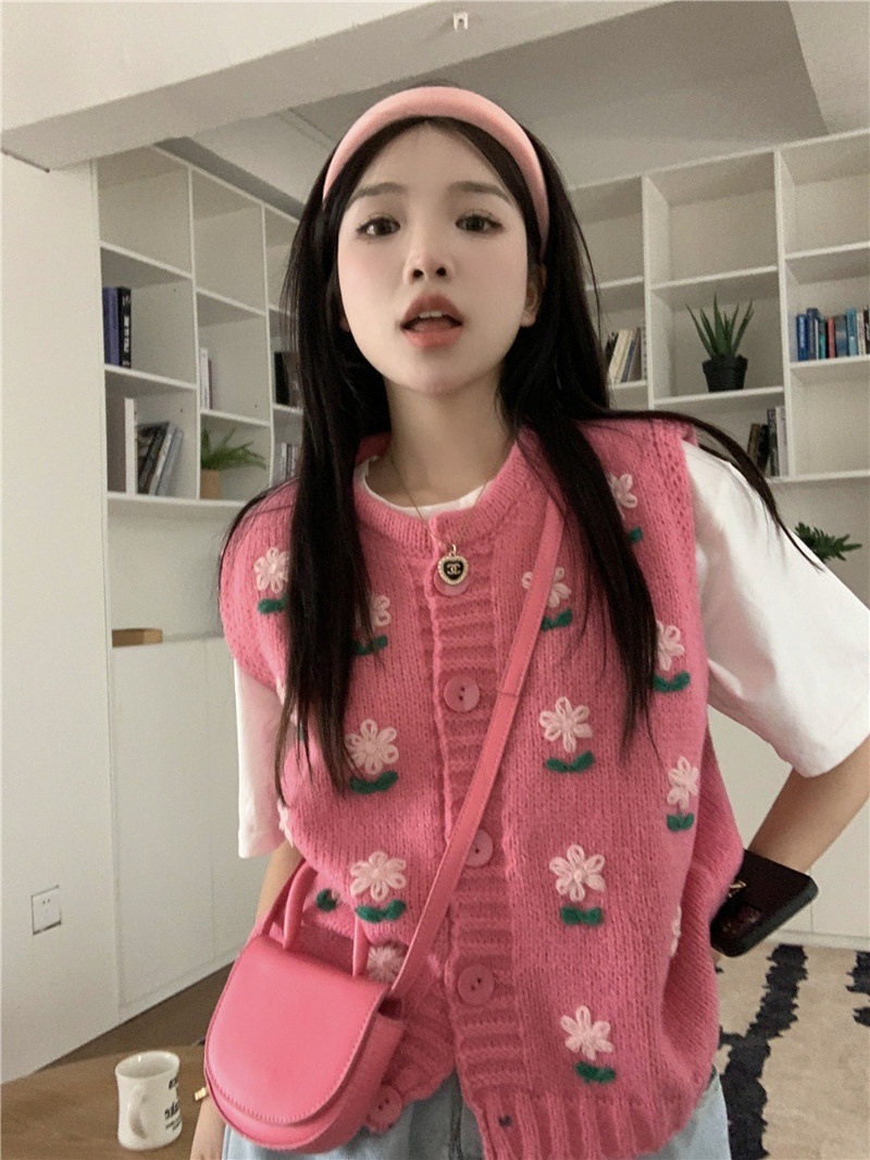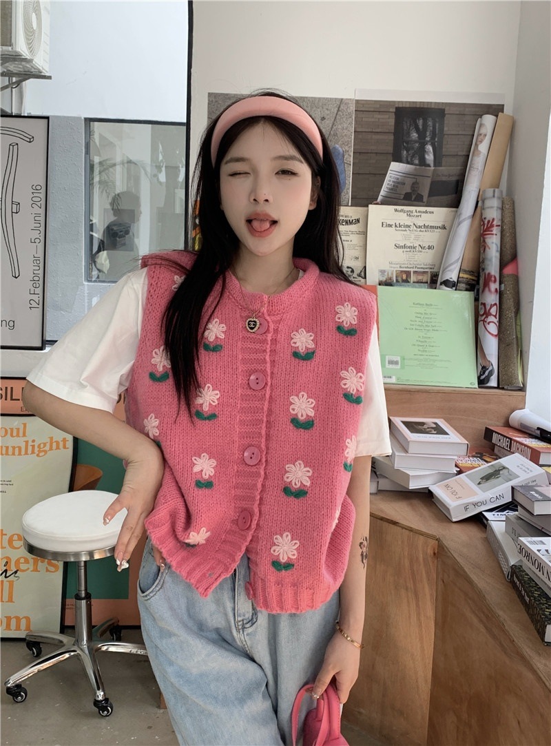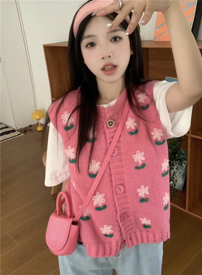 Color: Pink embroidered vest