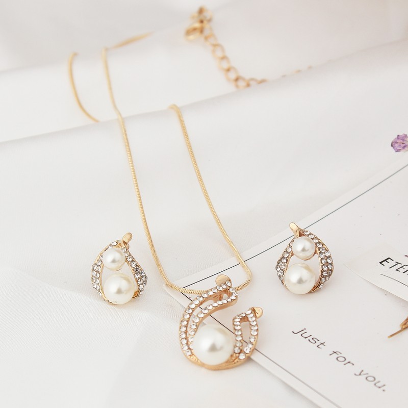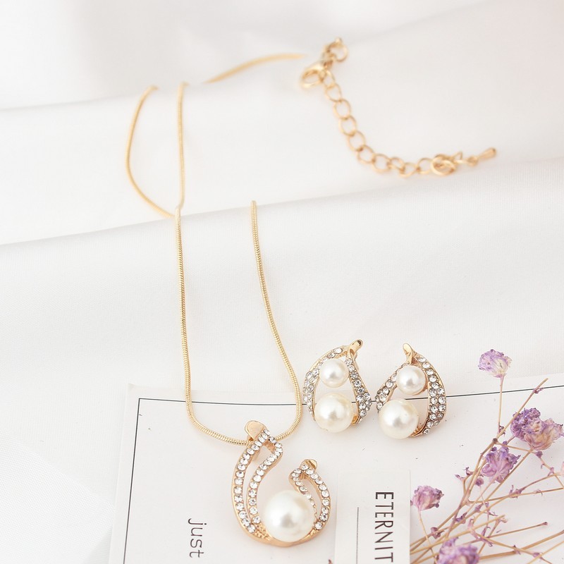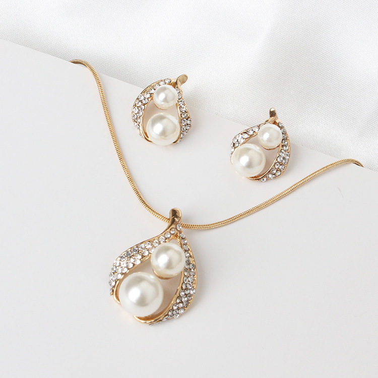 Europe and the United States foreign trade exquisite package with bridal jewelry set pearl water drop two Pearl Necklace Set