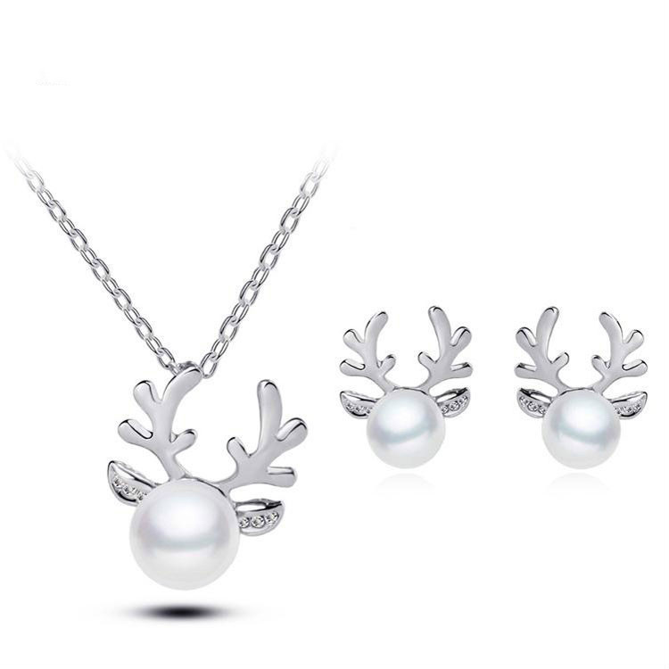 Europe and the United States foreign trade Pearl Necklace Earrings Set Diamond Wedding Jewelry Necklace Set bride antlers