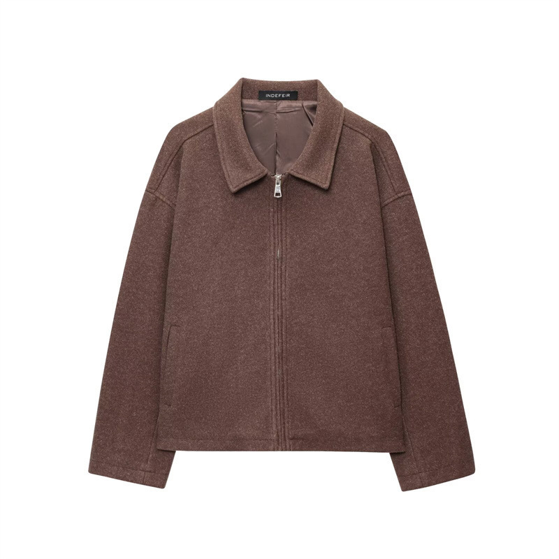 Be the first to review “European And American Women’s Clothing Brown Polo Collar Jacket Zipper Woolen Coat”