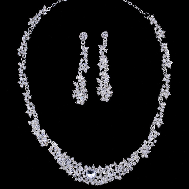 Factory Wholesale Jewelry Necklace Earrings Set Bride Wedding Dress Wedding Diamond Pendant Pendant
