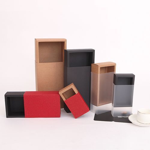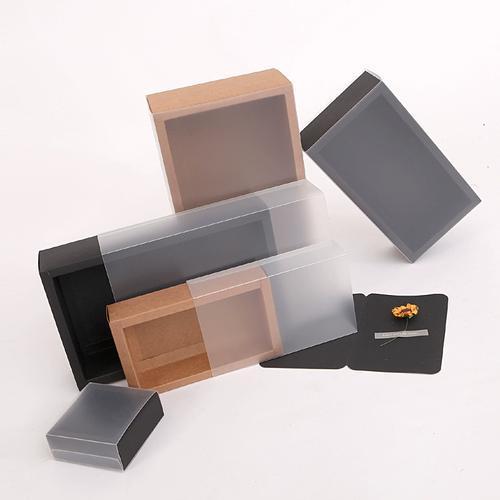 Folding Kraft Paper Draw Box Rectangular PVC Frosted Gift Tea Jewelry Storage Bag