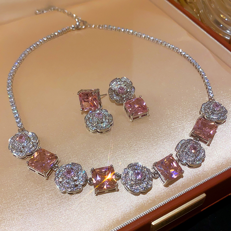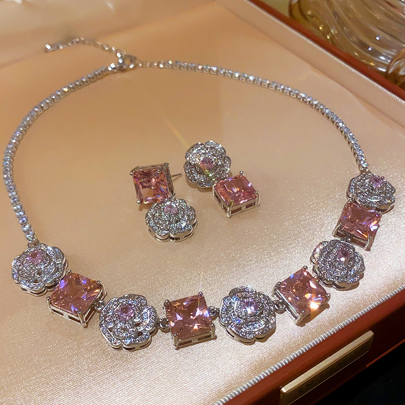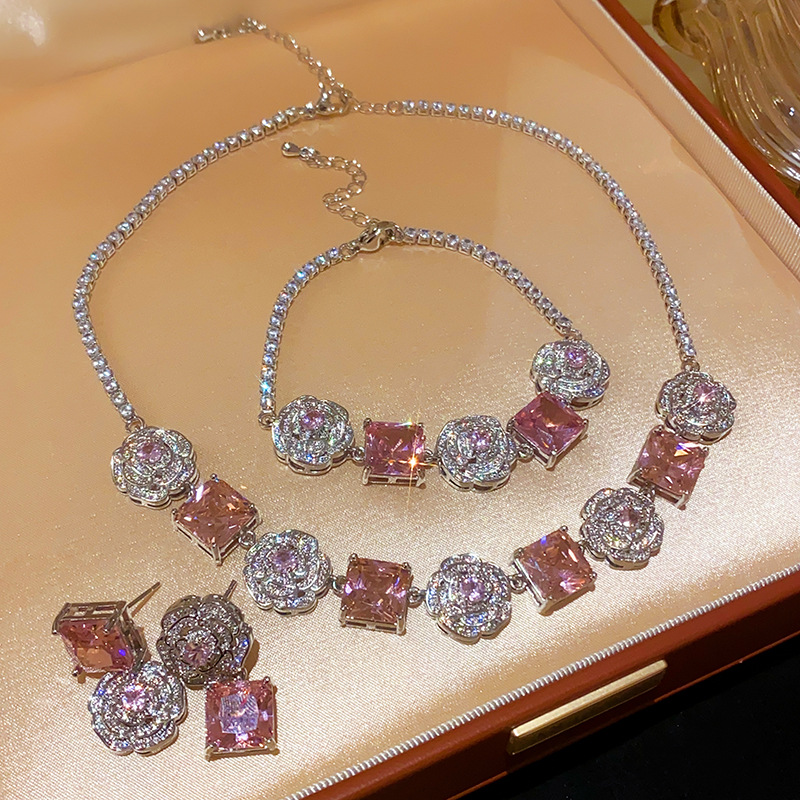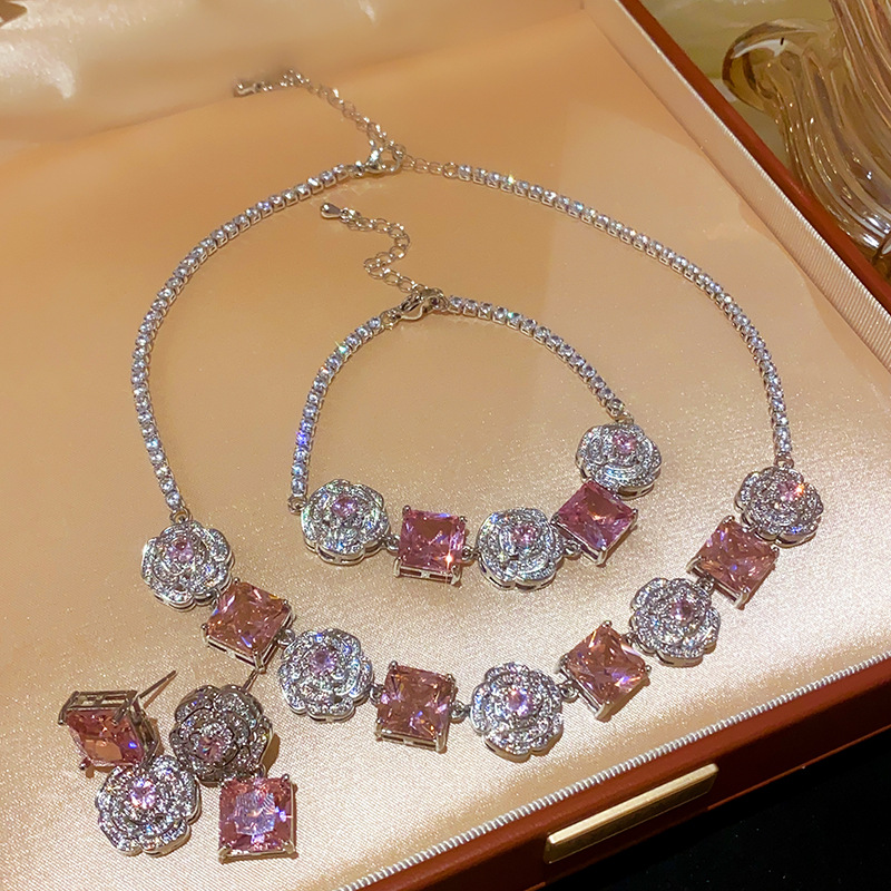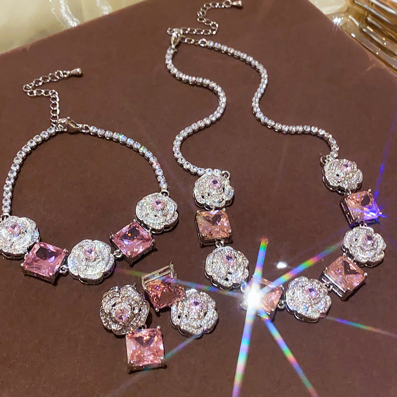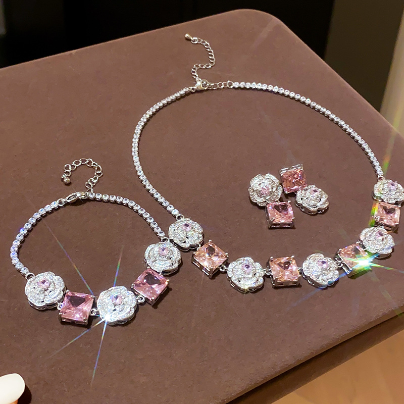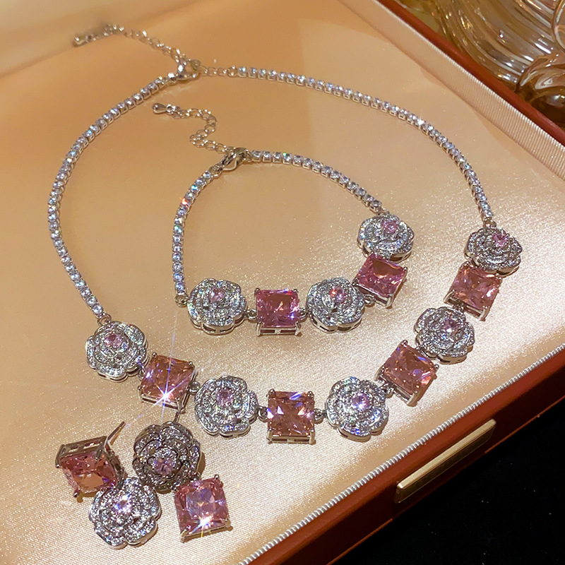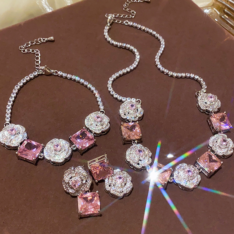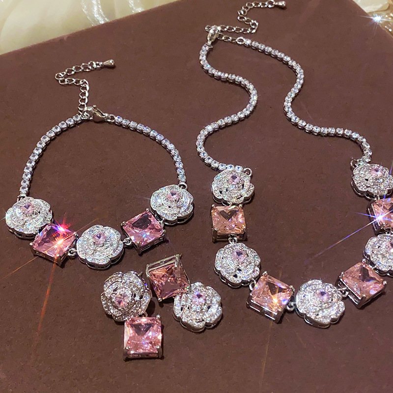 Color: necklace-silver-pink, bracelet-silver-pink, silver needle-silver-pink