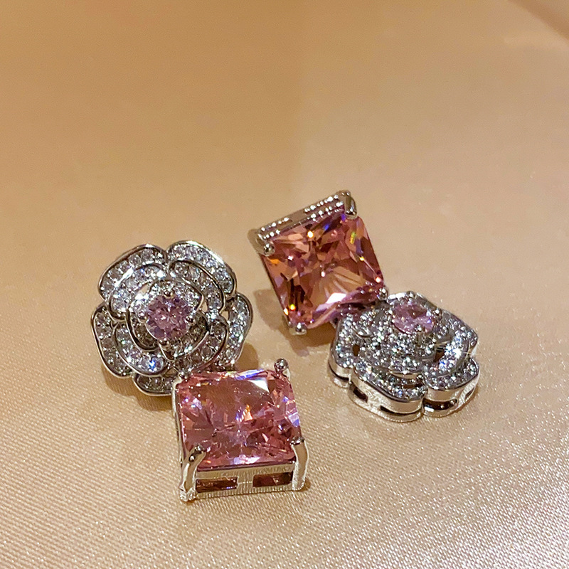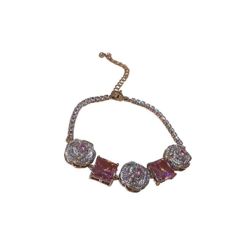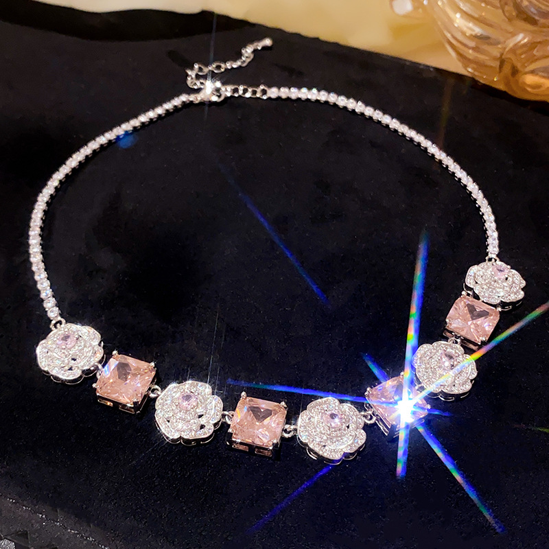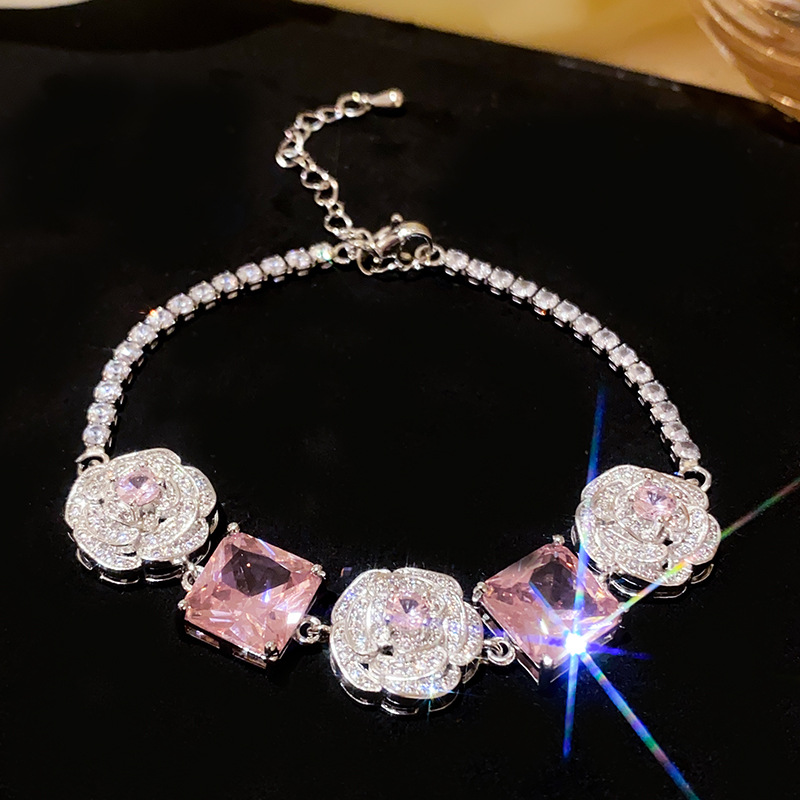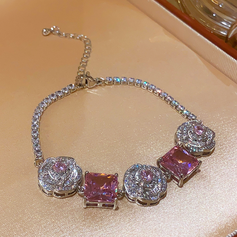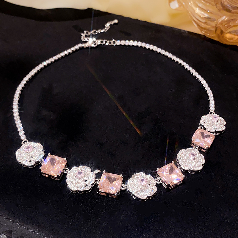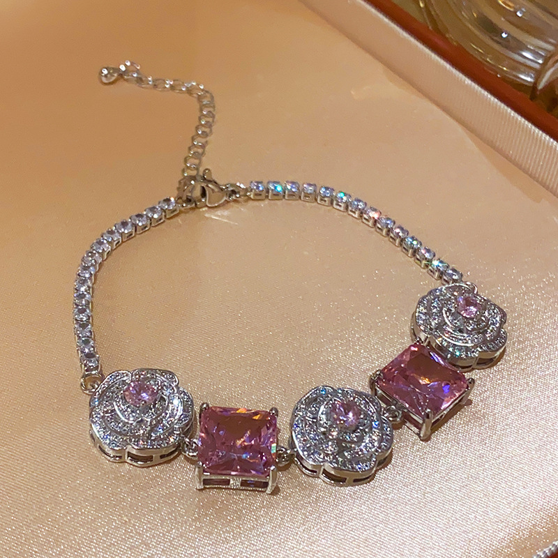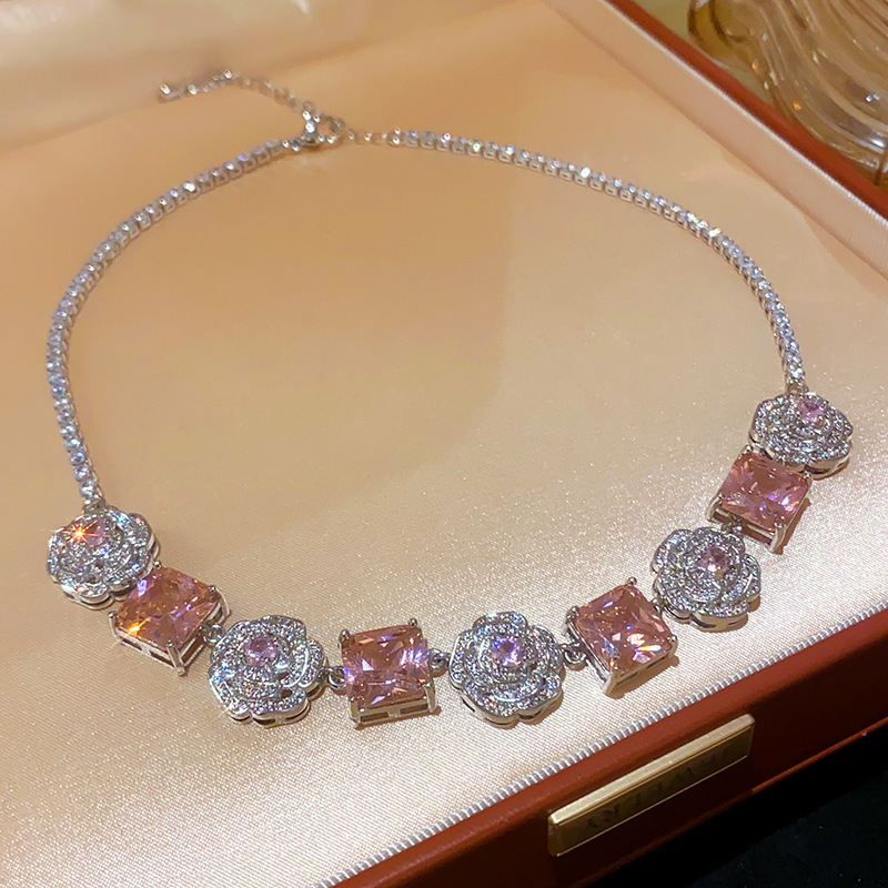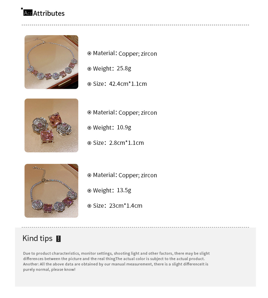 Color: necklace-silver-pink, bracelet-silver-pink, silver needle-silver-pink