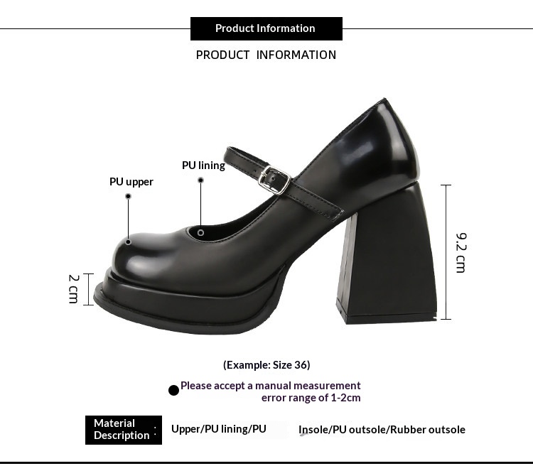 Heel style: thick heel, toe style: round toe