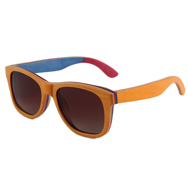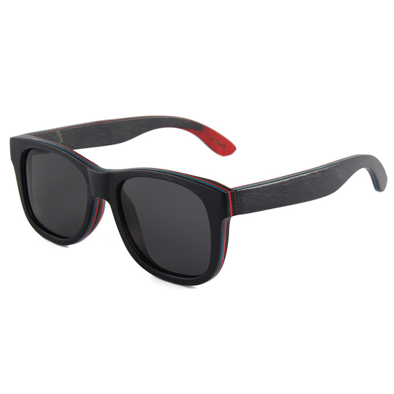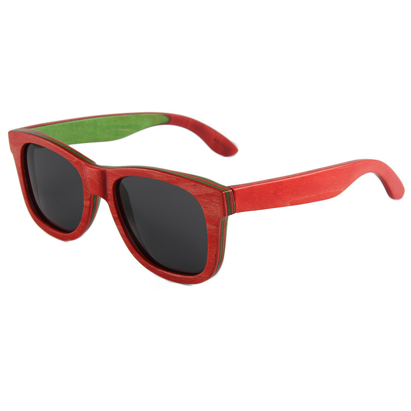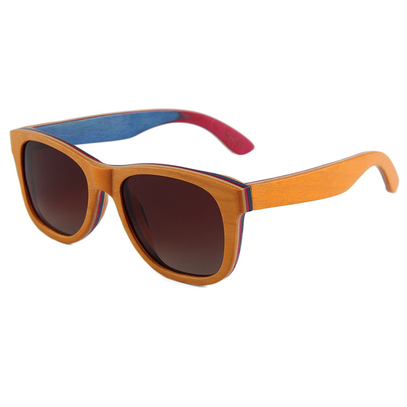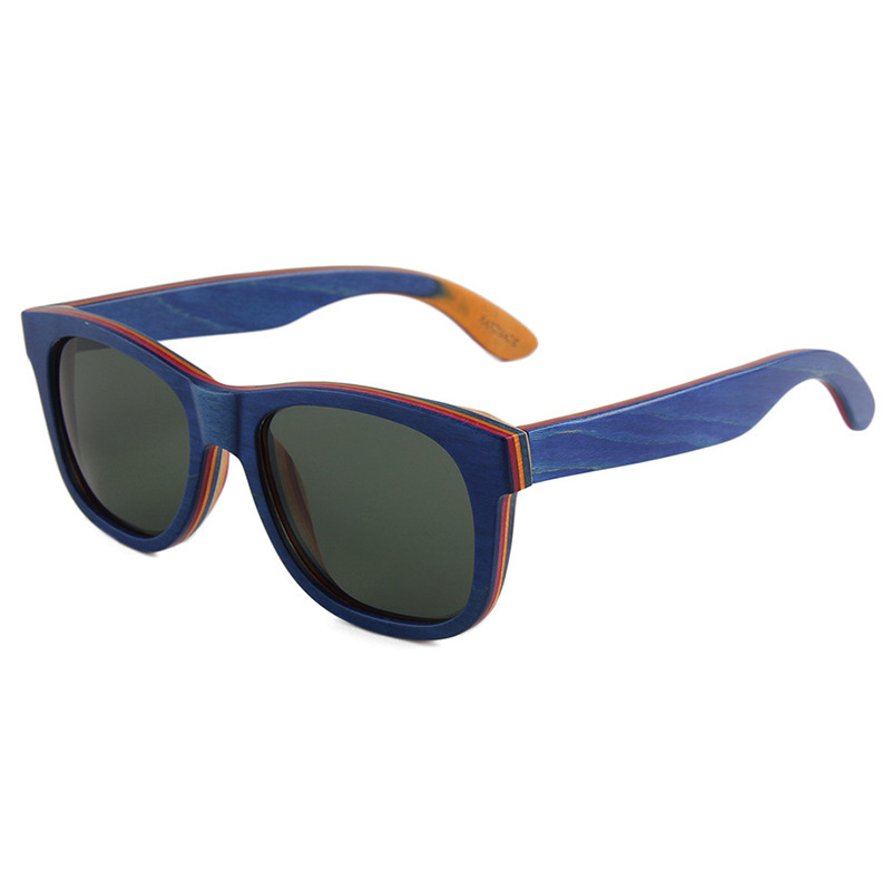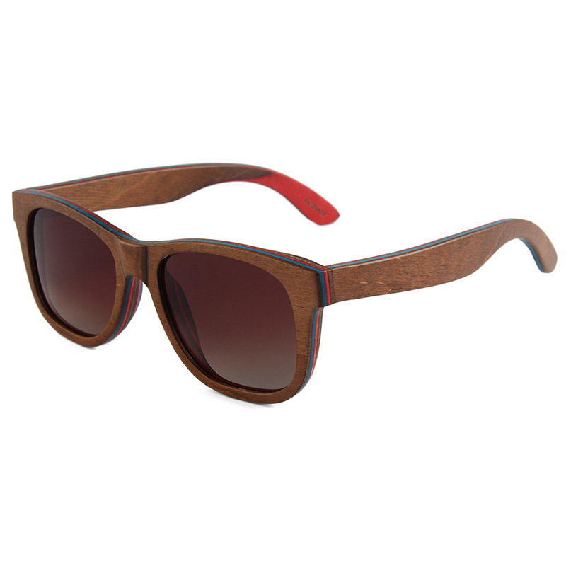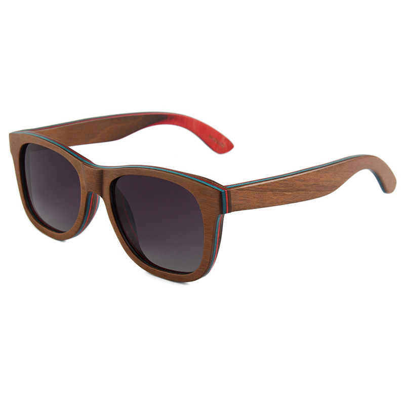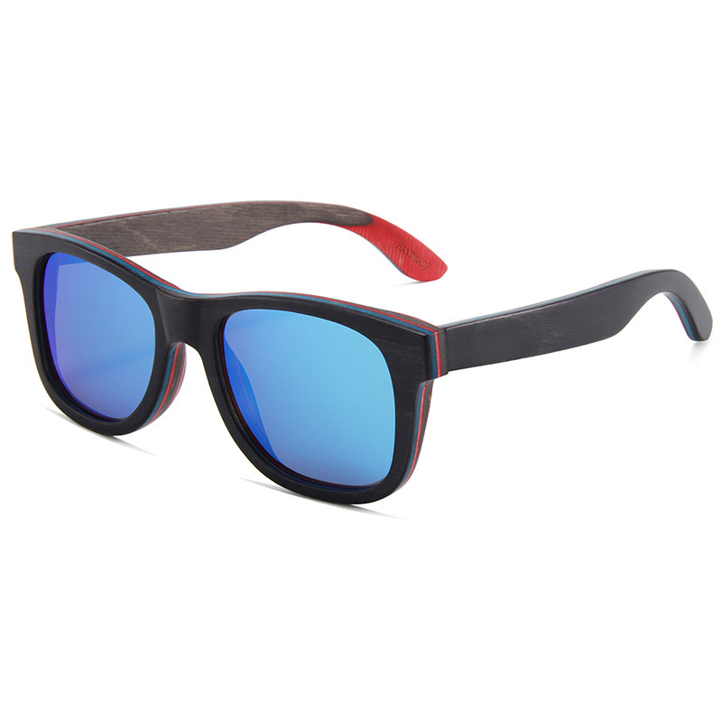 Colors: C4 blue skateboard wood dark green lens, C2 coffee skateboard wood double gray lens, C3 light brown skateboard wood double brown lens, C5 red skateboard wood full gray lens, C1 black skateboard wood full gray lens, C7 coffee skateboard wood double brown lens, MC4 black skateboard wood frame/polarized full gray lens with real ice blue mirror, C6 natural skateboard wood polarized double brown lens