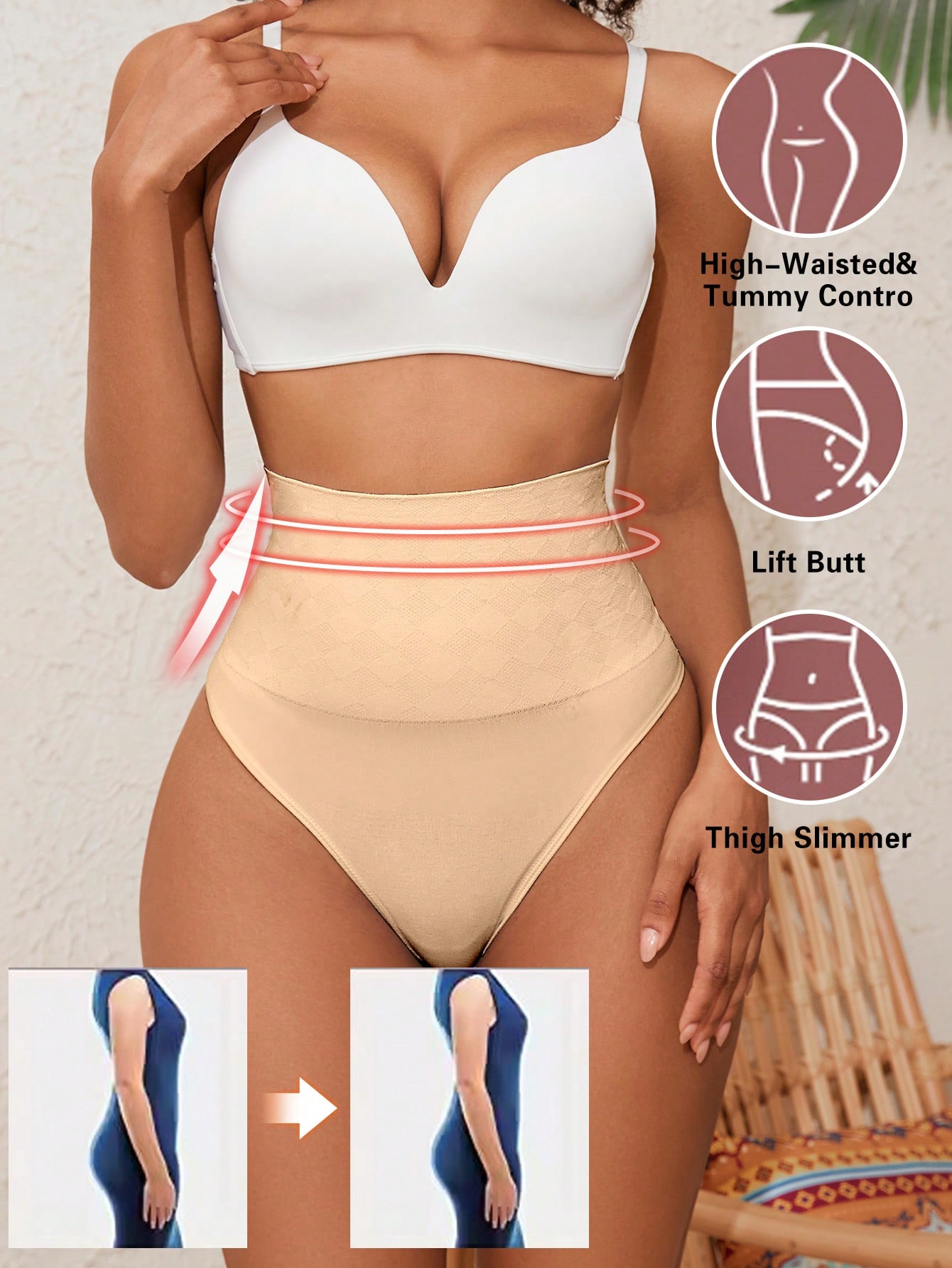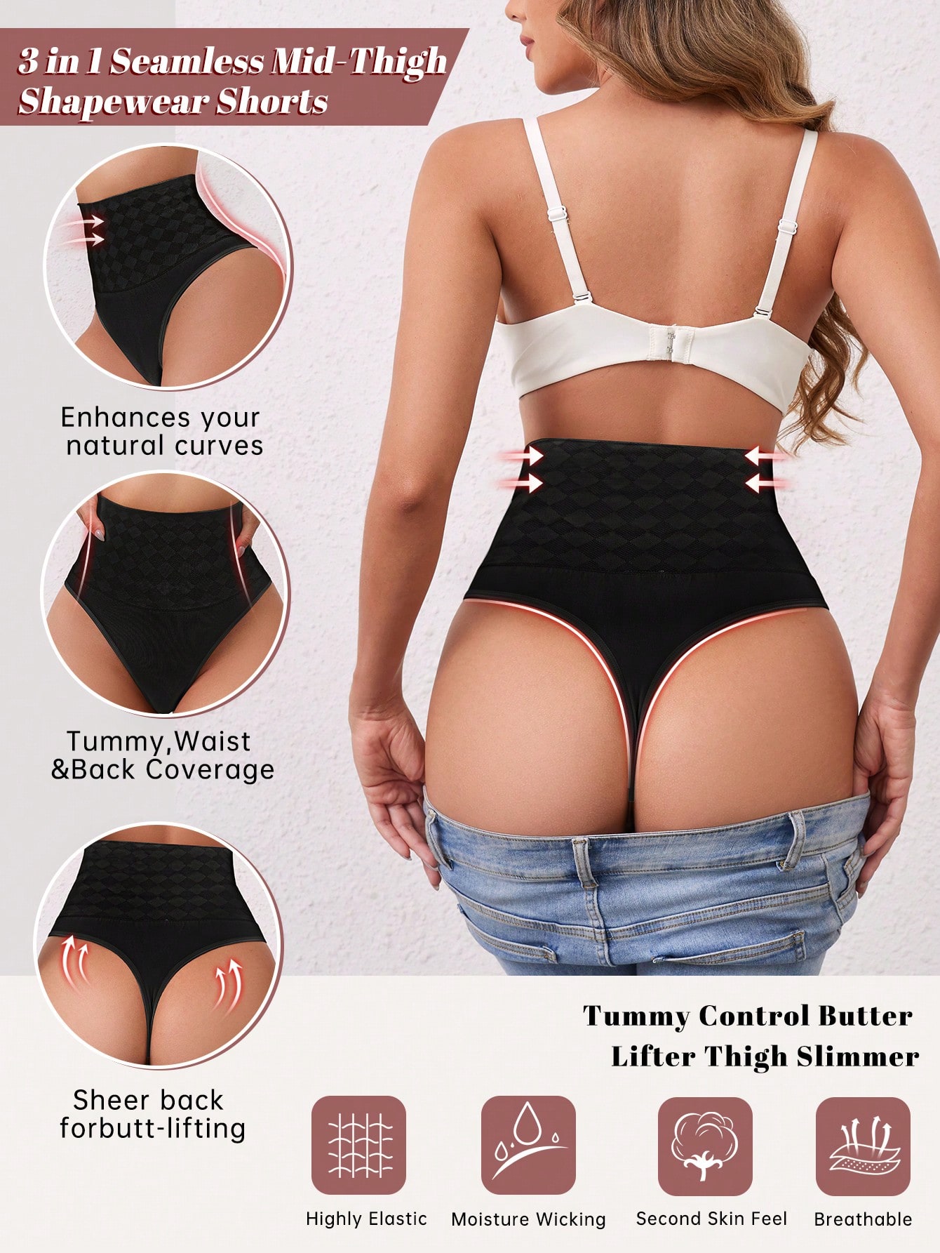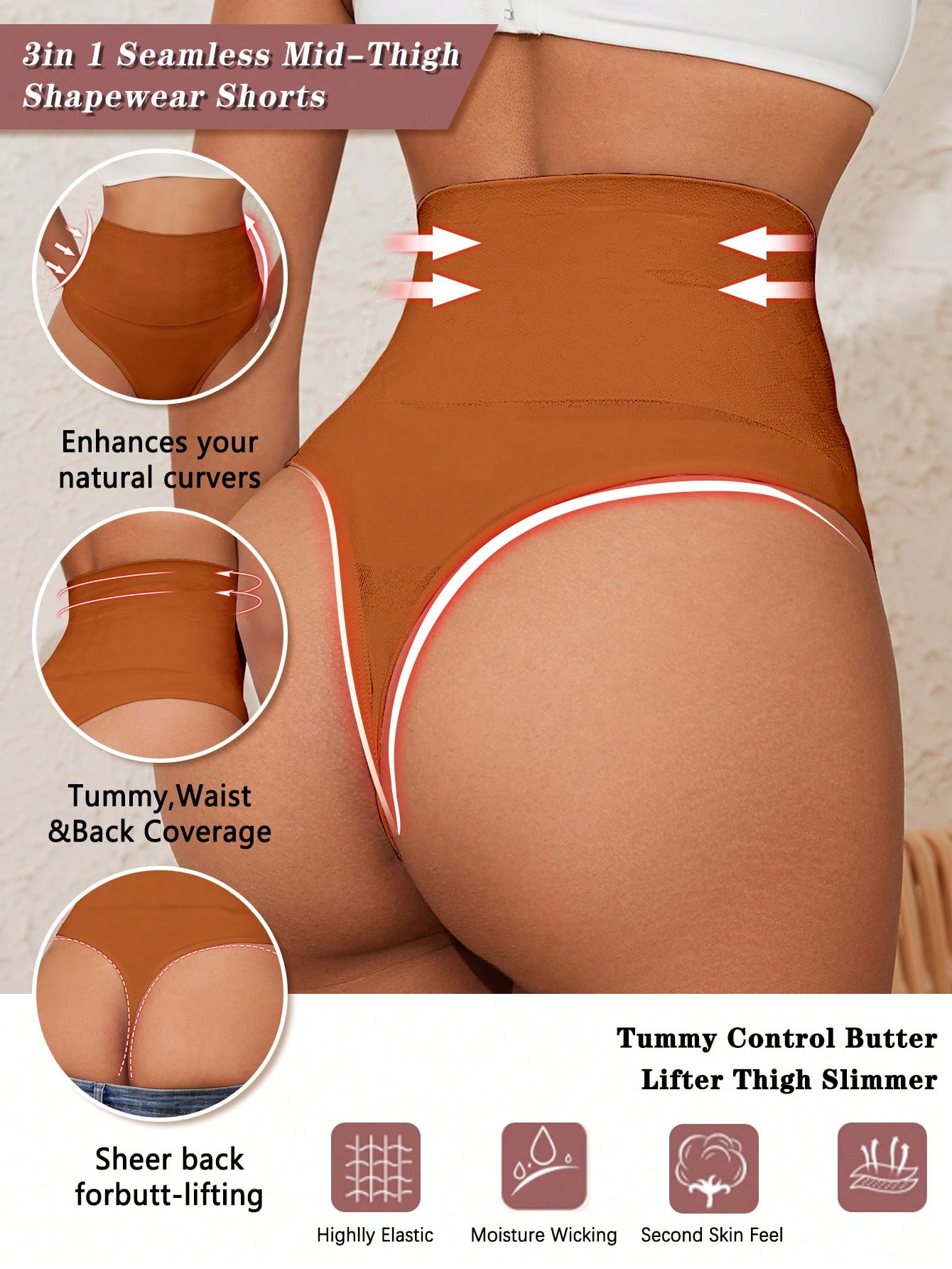 Panty-line free design for a flawless finish. Seamless shaping meets full-body contouring—perfect for bodycon dresses and skinny jeans