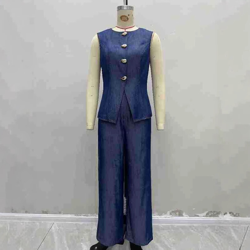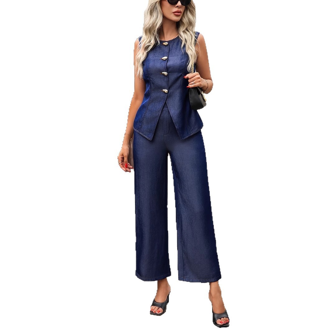 High-waisted Straight-leg Pants Two-piece Set With A Fitted Vest Top