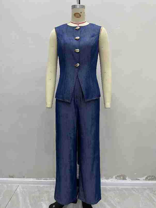 Be the first to review “High-waisted Straight-leg Pants Two-piece Set With A Fitted Vest Top”