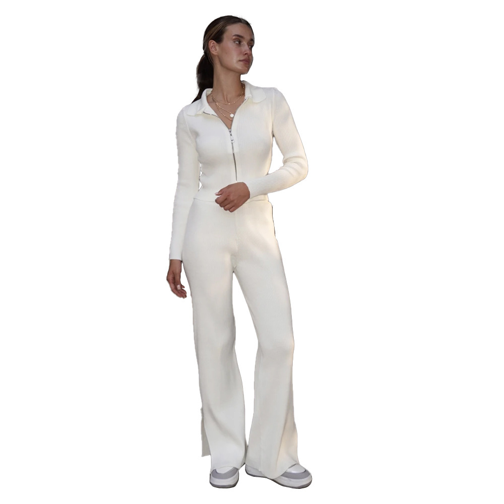 Knitted Cardigan Suit Short Cardigan Split Trousers