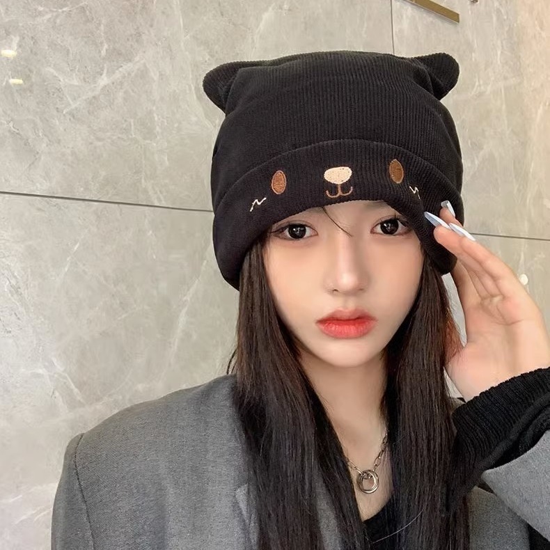 Color: cat ear knitted hat-pink, cat ear knitted hat-black, cat ear knitted hat-beige, cat ear knitted hat-light brown, cat ear knitted hat-Brown