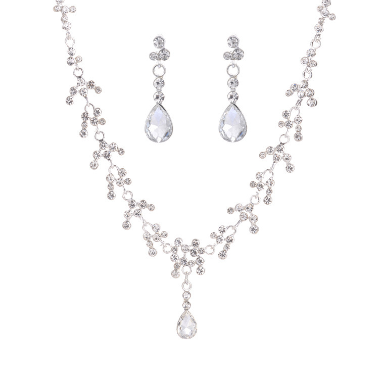 Korean Female Wedding Diamond Necklace Earrings Set Drop Bride Jewelry Wholesale Supply Of Foreign Hot Money