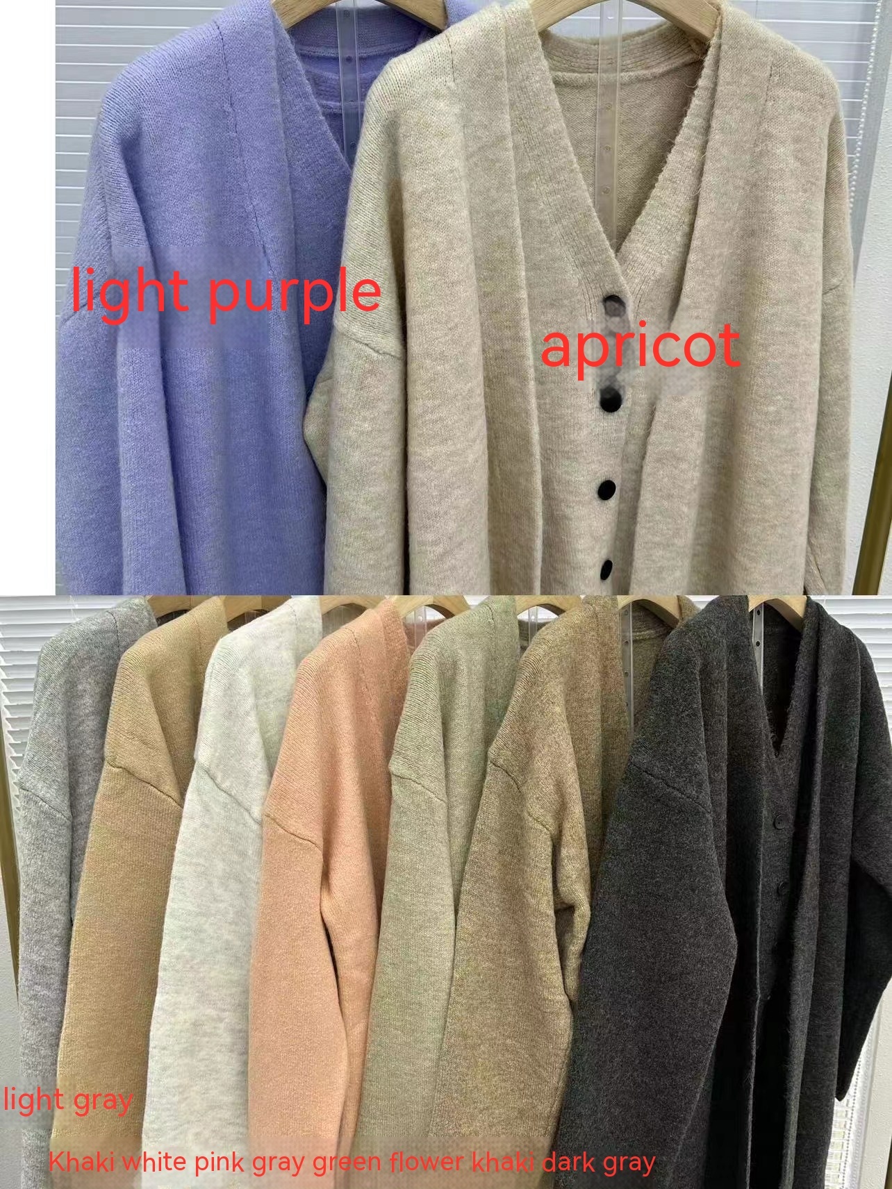 Color: Heather khaki, apricot, dark gray, light gray, pink, khaki, white, gray green, light purple