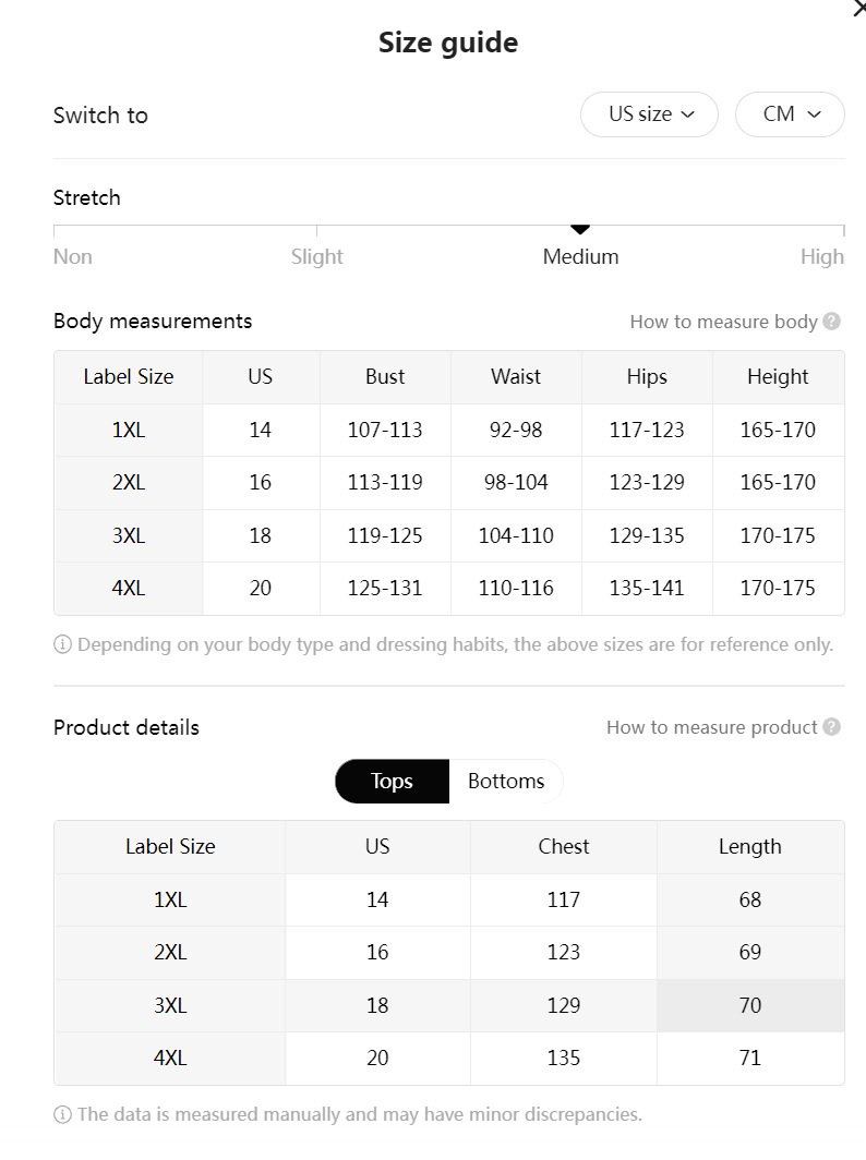 Size: 1XL, 2XL, 3XL, 4XL