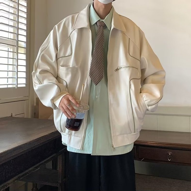 Be the first to review “Men’s Temperament Zipper Fashion Lapel Leather Coat”