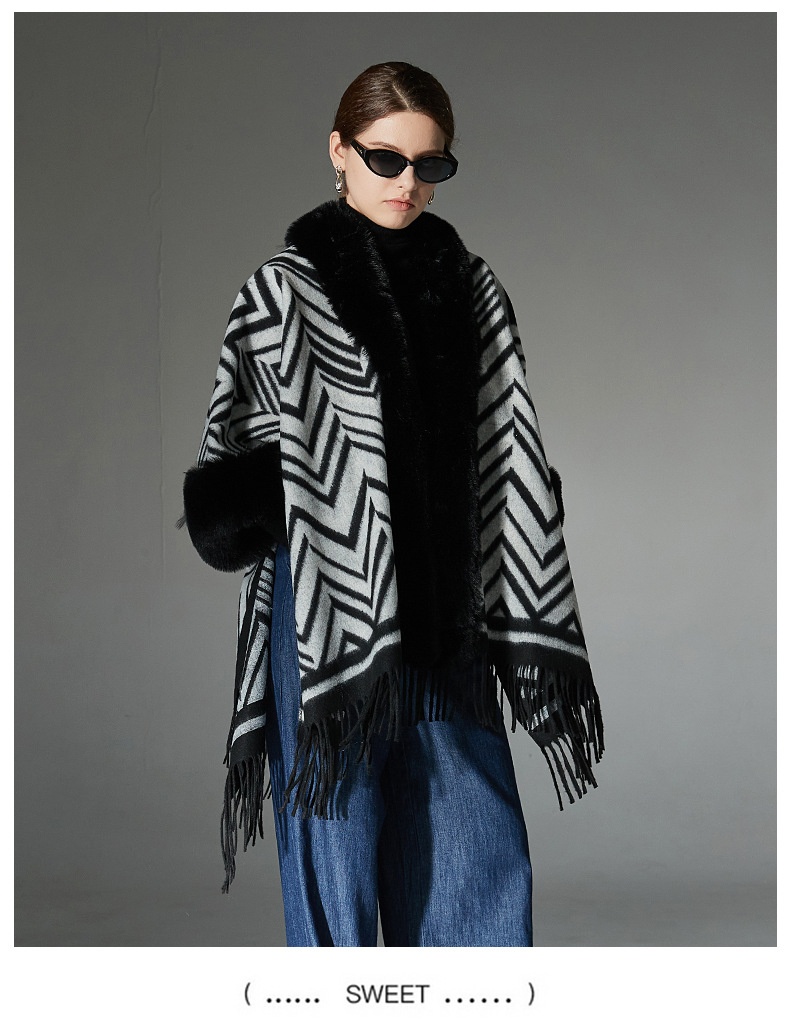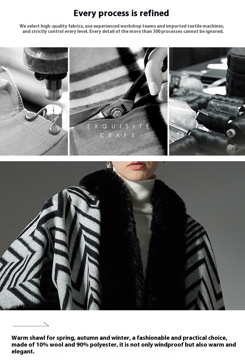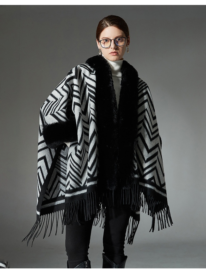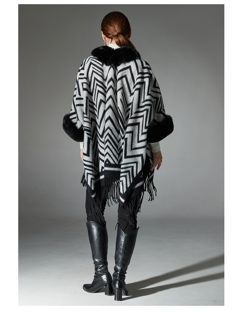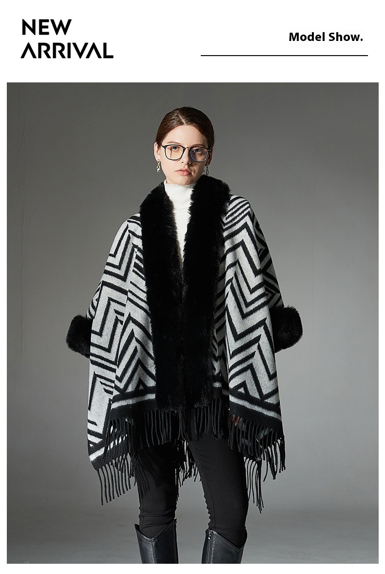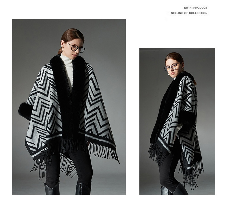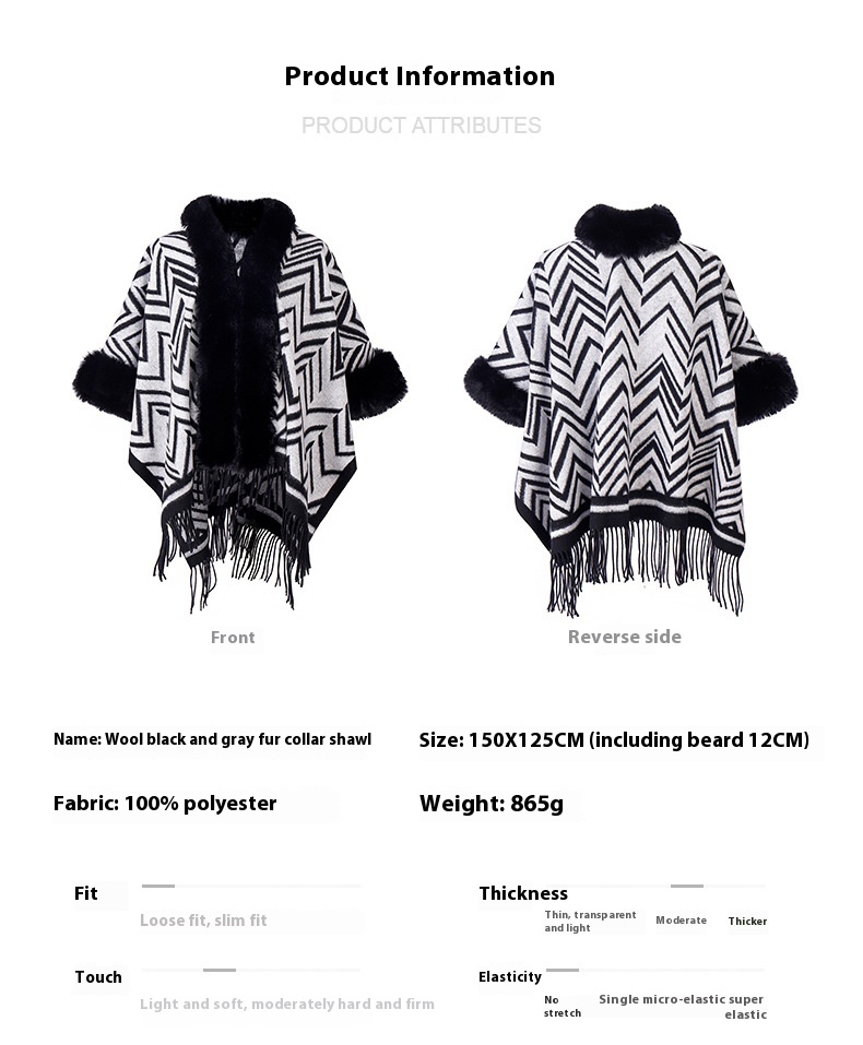 Color: Black gray fur collar shawl, Black gray without fur collar
