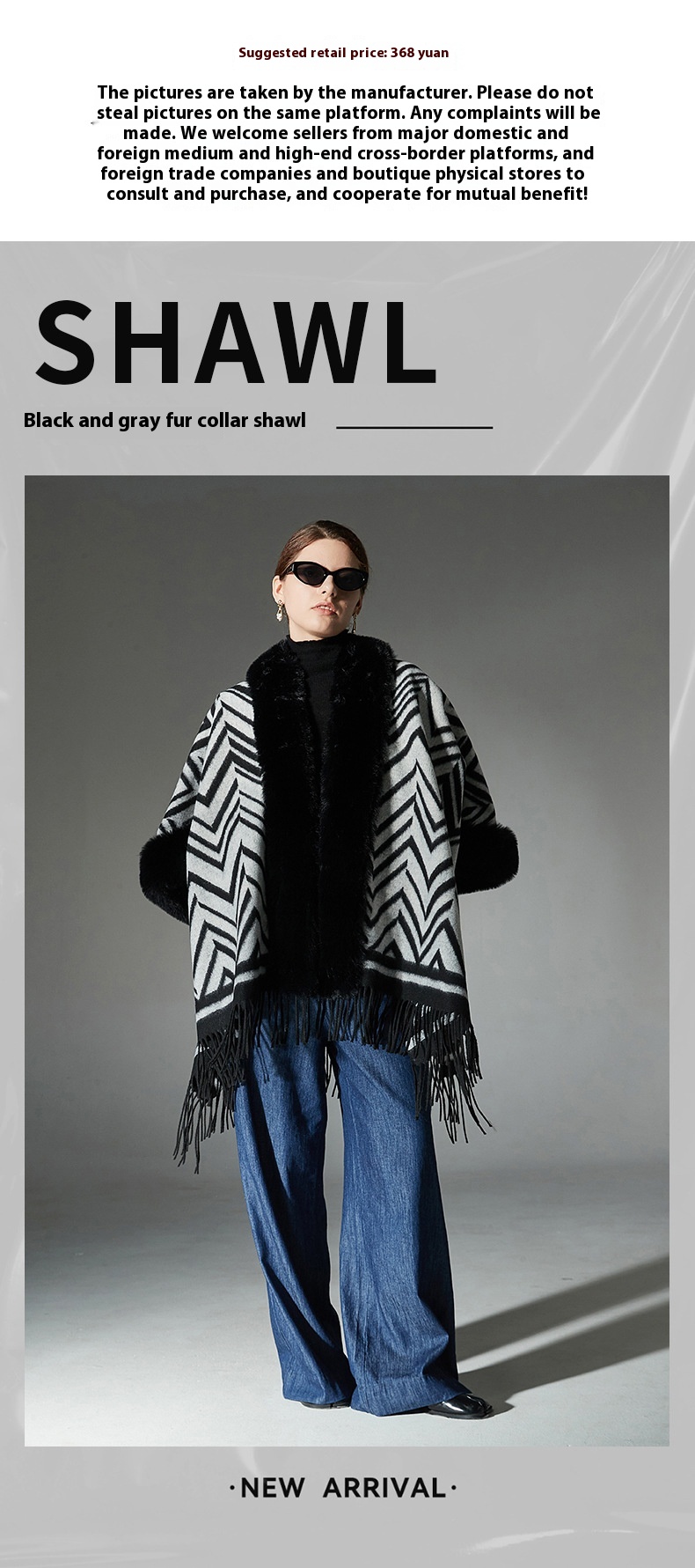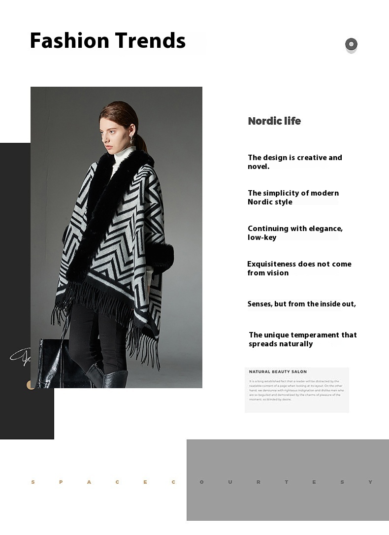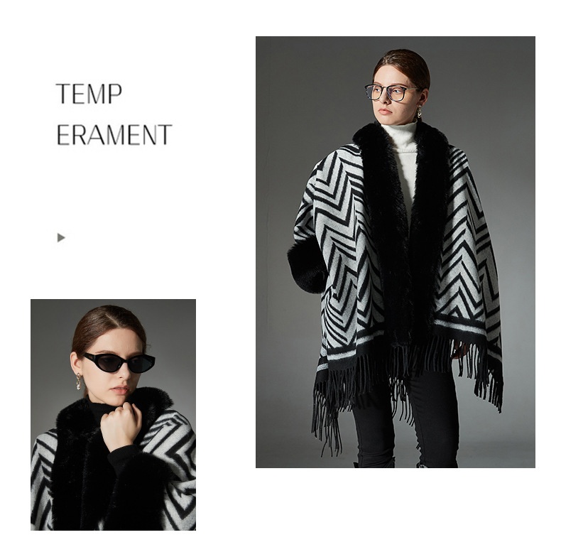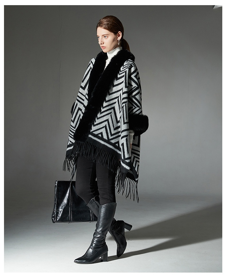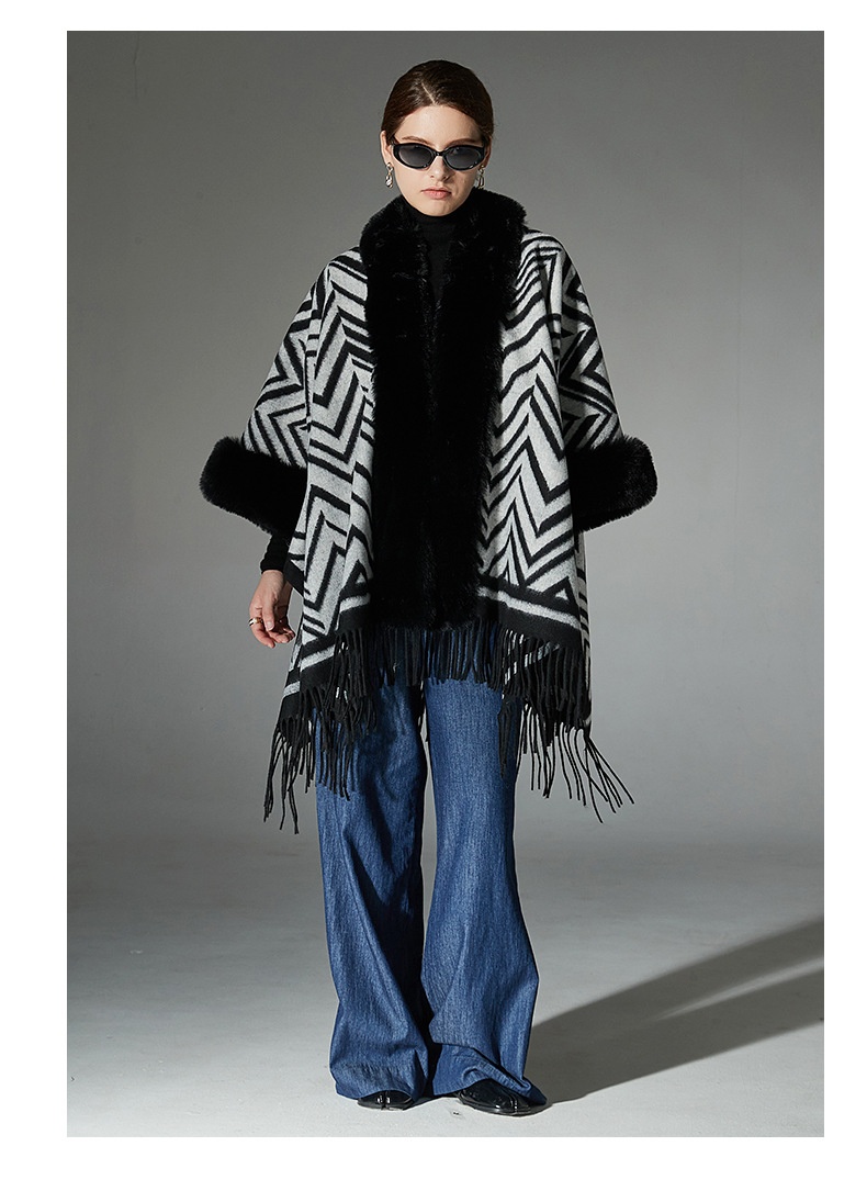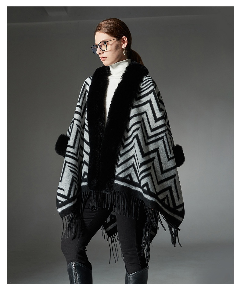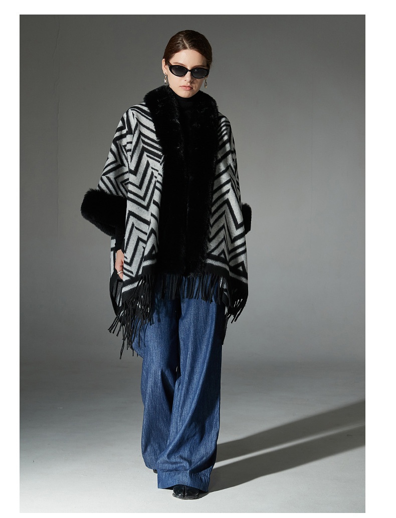 Color: Black gray fur collar shawl, Black gray without fur collar