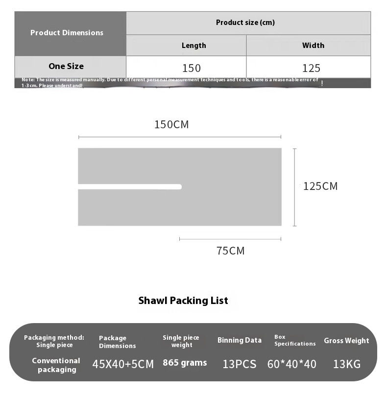 Length (CM):150 x 125cm (including 12CM)