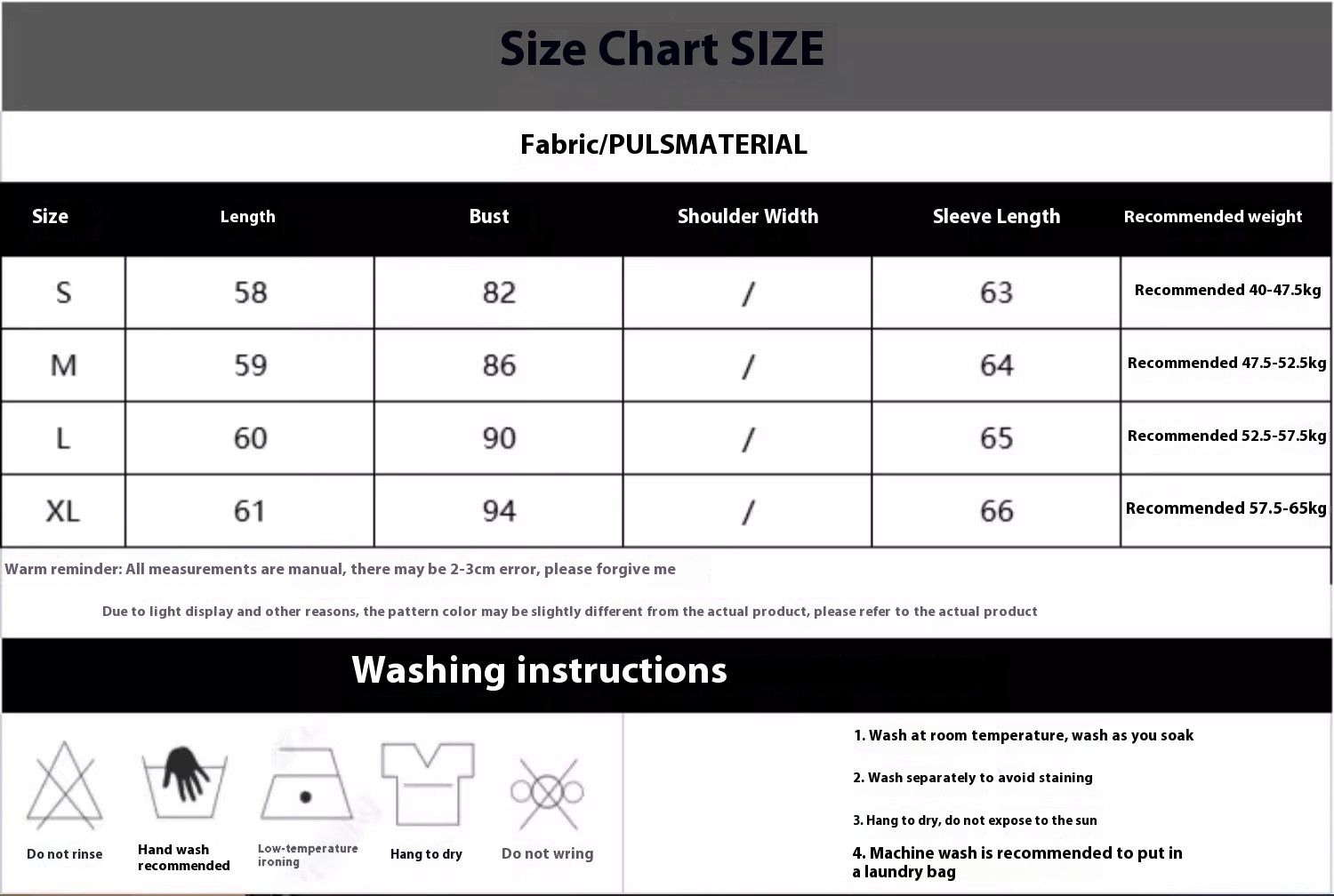 Note: 1. Asian sizes are 1 to 2 sizes smaller than European and American people. Choose the larger size if your size between two sizes. Please allow 2-3cm differences due to manual measurement. 2. Please check the size chart carefully before you buy the item, if you don’t know how to choose size, please contact our customer service. 3.As you know, the different computers display colors differently, the color of the actual item may vary slightly from the following images.