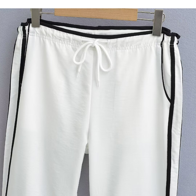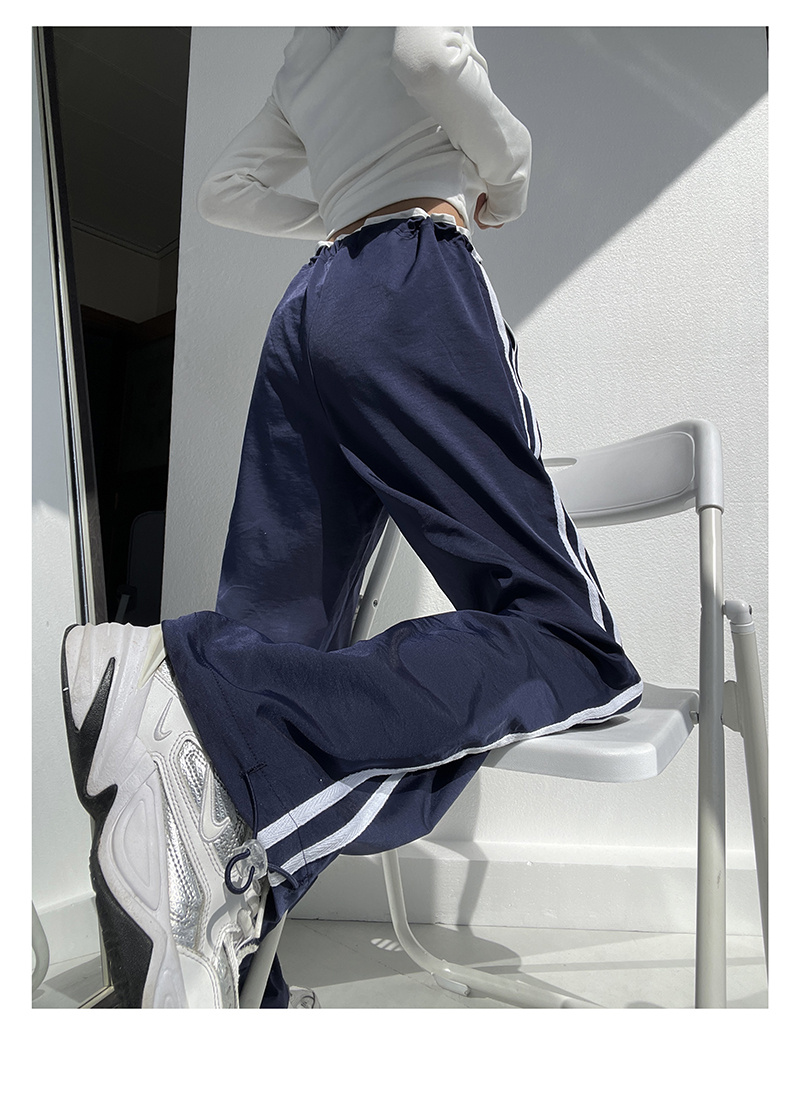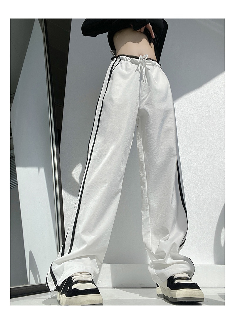 Ribbon Parallel Bars Contrast Color Loose Straight Slimming Draping Pants