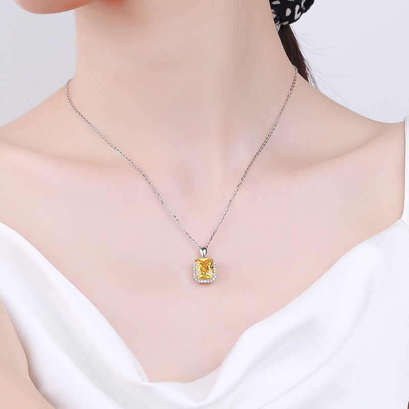 Be the first to review “S925 Sterling Silver Princess Square Yellow Diamond Necklace Earrings”