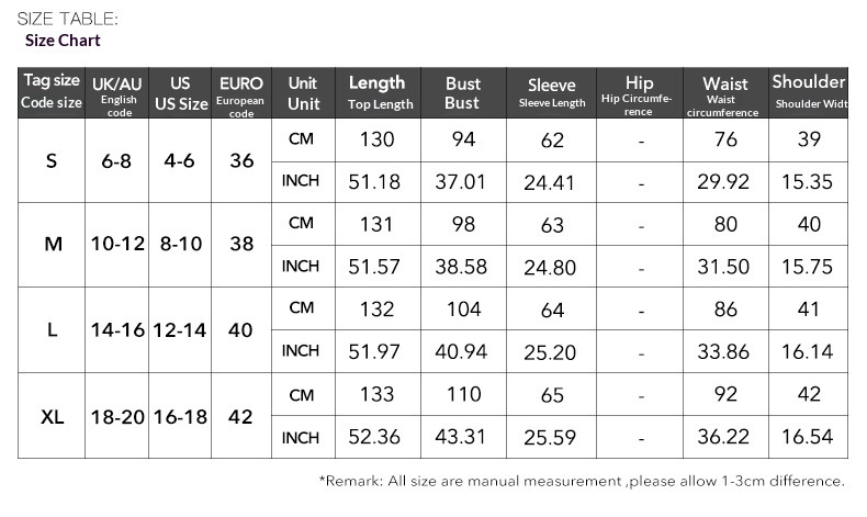1. Asian sizes are 1 to 2 sizes smaller than European and American people. Choose the larger size if your size between two sizes. Please allow 2-3cm differences due to manual measurement. 2. Please check the size chart carefully before you buy the item, if you don’t know how to choose size, please contact our customer service. 3.As you know, the different computers display colors differently, the color of the actual item may vary slightly from the following images.