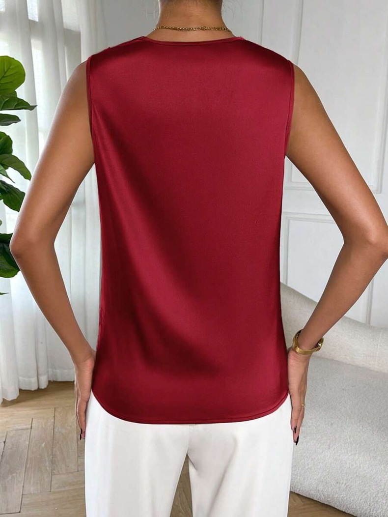 Sleeveless Satin-like Silk Blouse For Spring And Summer