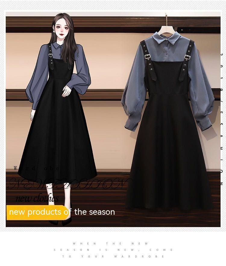 Color: blue shirt [one piece], white shirt [one piece], black slip dress [one piece], blue shirt suspender skirt [two-piece set], white shirt suspender skirt [two-piece set]]