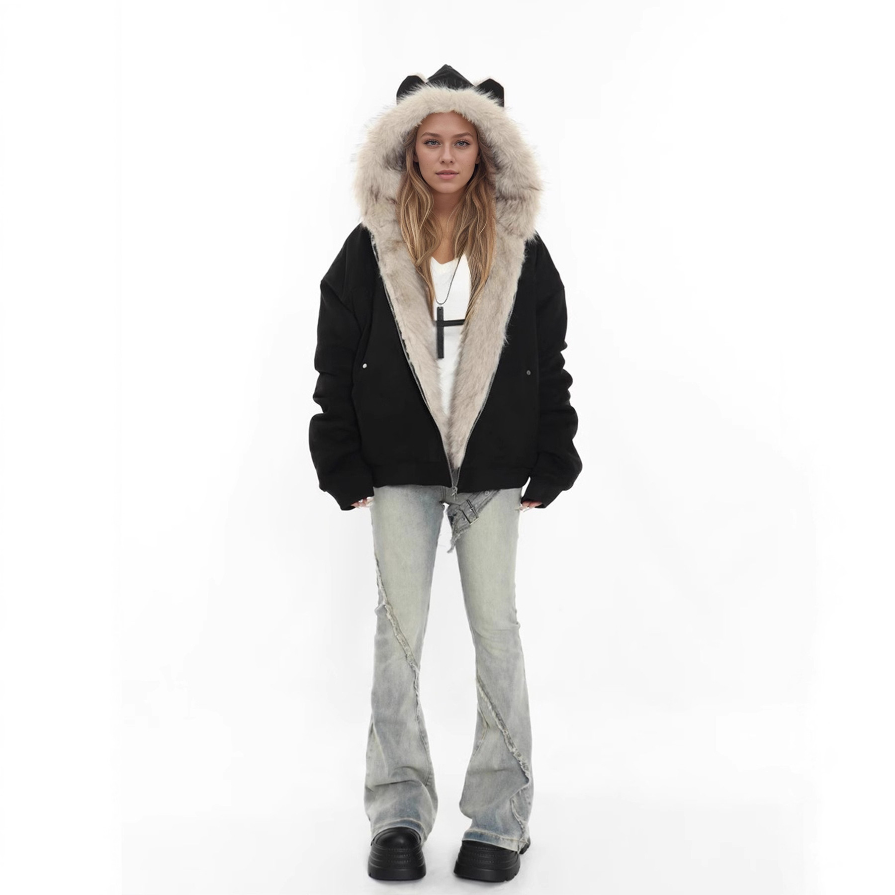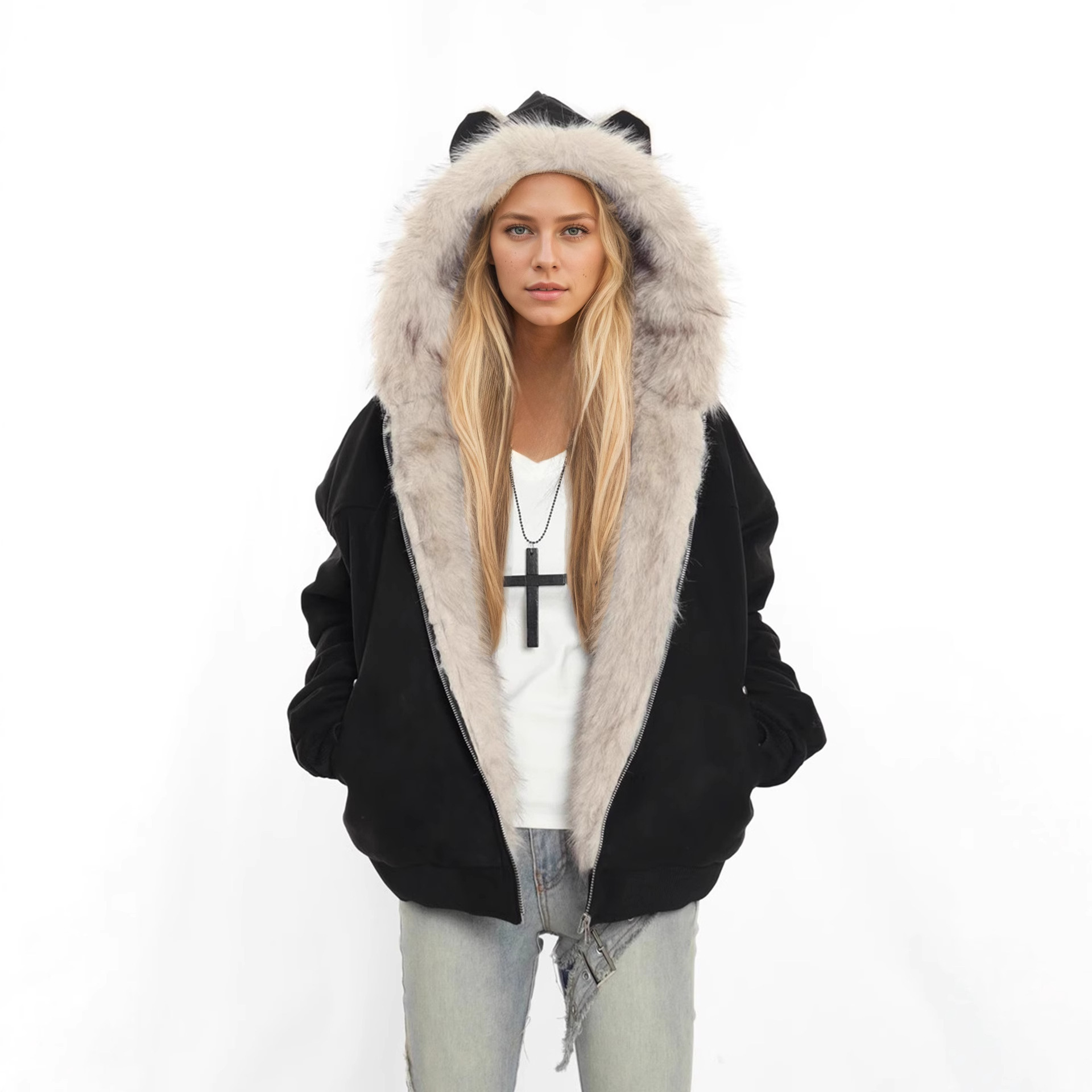 Fur collar material: Faux fur