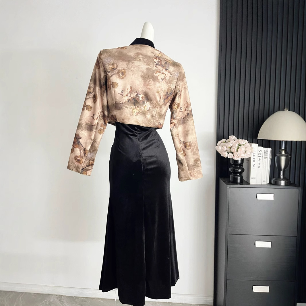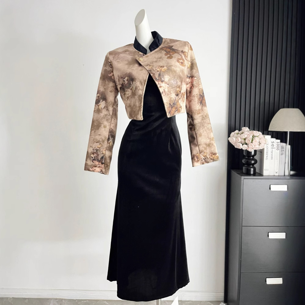 Womens Autumn Two-Piece Set Short Jacket And Suspender Dress
