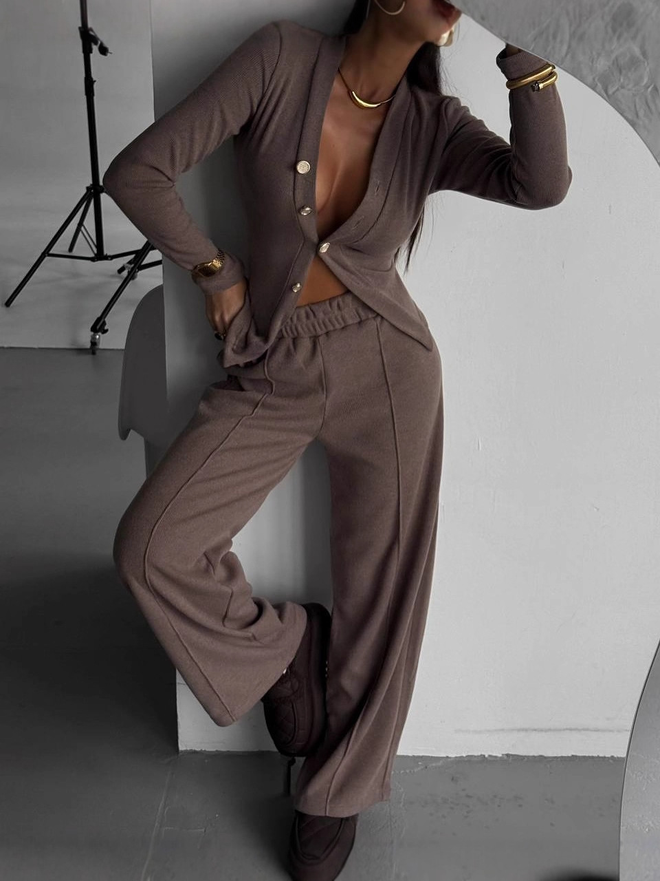 Women’s Casual Button-Up Top And Pants Set