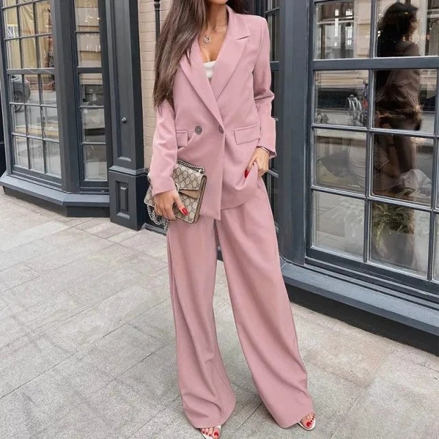 Fabric name: British oblique Color: Brown, pink Sleeve type: regular sleeve Pants length: trousers Main fabric composition: Polyester (polyester fiber) Size: S,M,L,XL Applicable Gender: Female Style type: temperament commute Sleeve length: long sleeve Popular elements: solid color Style: commute style