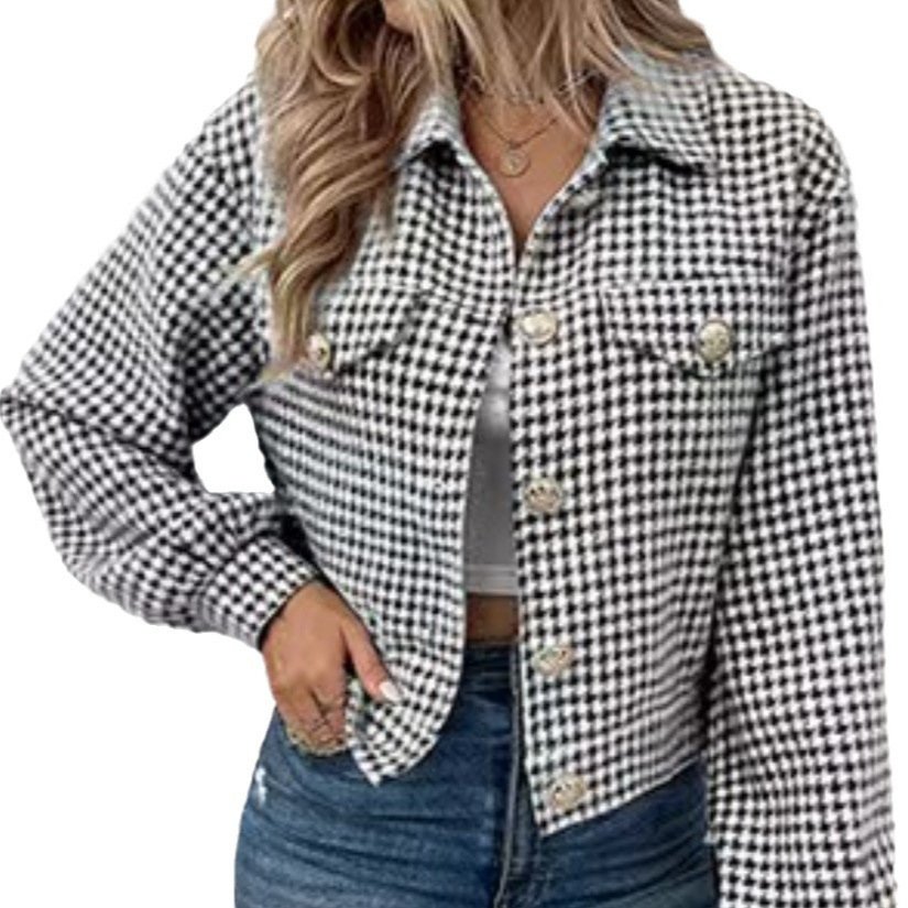 Women’s Coat Lapel Single Breasted Houndstooth Jacket