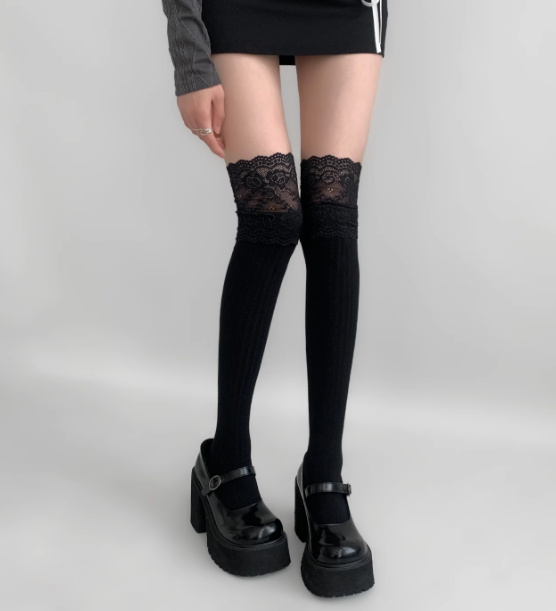 Color: white【 tree fungus-like lacework], Black [tree fungus-like lacework], Black [over-the-knee lace], white【 over-the-knee lace]]]]
